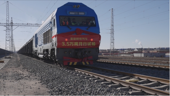 3.5萬噸編組列車是我國目前重載列車試驗運行最長編組,7列群組試驗列車分別在納林溝門、沙壩子、關碾房和達拉特北四個車站通過“虛擬連掛”方式,動態編組成為一列“群組列車”,以緊追蹤協同運行方式,運行至萬水泉南南場自動解編進站。